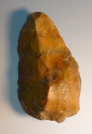 The hand axe, made by chipping flint to form a wedge, in the hands of a human transforms force and movement of the tool into a transverse splitting forces and movement of the workpiece. The hand axe is the first example of a wedge, the oldest of the six classic simple machines, from which most machines are based. The second oldest simple machine was the inclined plane (ramp),[6] which has been used since prehistoric times to move heavy objects.[7][8]