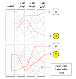 - الوضع الأولي للدوّارات: يختارها المشغل، وهو مختلف لكل رسالة.