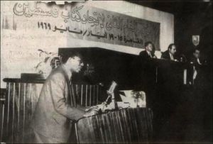 - ^ المؤتمر العام الثاني لإتحاد كتاب فلسطين -القاهرة الفترة من (15- 19) أيار/مايو 1969