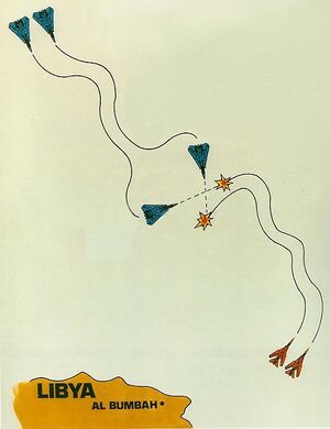 As both pairs of aircraft converged, the E-2 and other U.S. eavesdropping assets in the area monitored radio communications between the Libyan aircraft and their ground controllers.[6][11] The Americans listened to the MiG-23s receiving guidance to intercept the F-14s from ground controllers at a radar station in Bomba.[11] This radar station was one of several activated along the Libyan coast to support the MiG-23s.[6]