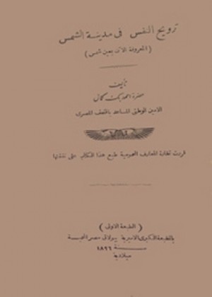 • ترويح النفس في مدينة الشمس والمعروفة الآن بعين شمس، تناول فيه تاريخ المدينة وأسماءها القديمة ومعابدها، ومعبوداتها وآثارها وأطلالها الحالية.