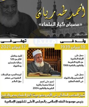 في 17 فبراير 2021 توفي الدكتور المصري أحمد طه ريان، شيخ المالكية وعضو هيئة كبار العلماء بالأزهر، متأثرا بإصابته بفيروس كورونا. [2]