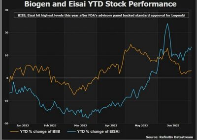في 7 يوليو 2023، حققت لكمبي، التعاون بين إيساي وبيوجين، موافقة قياسية مرموقة من إدارة الغذاء والدواء الأمريكية، وهو أول علاج لمرض الزهايمر يتحقق هذا الهدف، مما يفتح الطريق أمام توسيع تغطية التأمين للدواء.[2]