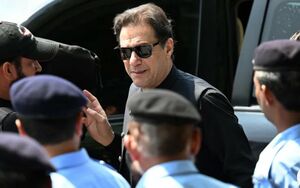 | أُوقف رئيس الوزراء الباكستاني السابق عمران خان، بعد الحكم عليه بالسجن لـ3 سنوات لإدانته بتهمة الكسب غير المشروع في قضية تتعلق بتلقيه هدايا أثناء تولي منصبه، بحسب الشرطة ومسؤولين، 7 أغسطس 2023. |