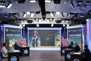 أصدر الرئيس جو بايدن أول صورة ملونة كاملة من تلسكوب جيمس وب الفضائي التابع لوكالة ناسا في 11 يوليو، خلال حدث عام في البيت الأبيض في واشنطن. تُظهر هذه الصورة الأولى القدرات القوية لبعثة وب، وهي شراكة مع وكالة الفضاء الأوروپية (ESA) ووكالة الفضاء الكندية (CSA).