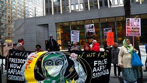 في صباح يوم 15 يناير 2022، وخلال مراسم دينية في كنيس بمنطقة كوليڤيل، في تكساس، احتجز مسلح رهائن وزعم أنه شقيق عالمة الأعصاب الباكستانية عافية صديقي، وصاحبة لقب "سيدة القاعدة"، التي أدينت بالاعتداء ومحاولة قتل جندي أمريكي في أفغانستان، وهي الآن محتجزة في أحد السجون الأمريكية بعد الحكم عليها بالسجن لمدة 86 عامًا.