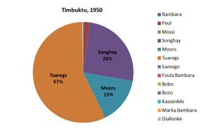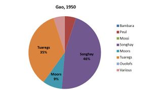 يسكن المنطقة شعوب الطوارق، المورو, الصنغاي والفولا (فولا: [Fulɓe] Error: {{Lang}}: text has italic markup (help)؛ فرنسية: Peul). حسب تقديرات 1950، شكل بدو (الصنغاي، المورو، والطوارق) 95% من إجمالي السكان.[12]