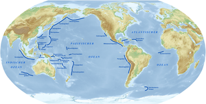تشكل الخنادق أو الأخاديد أكثر أجزاء المحيط عمقًا. وتوجد العديد من الخنادق في المحيط الهادئ، خاصة في جانبه الغربي. وتتميز معظم الخنادق بكونها طويلة، وضيقة وعميقة، حيث يتراوح عمقها بين 3 و4كم تحت قاع البحر المحيط بها. ويوجد أعظم عمق في المحيط على الاطلاق في خندق ماريانا جنوب شرقي اليابان، حيث ينخفض إلى أكثر من 11كم تحت مستوى سطح البحر. ويتكرر حدوث الزلازل والثورانات البركانية على امتداد هذه الخنادق. وتوجد العديد من الخنادق بالقرب من سلاسل الجزر البركانية المعروفة باسم أقواس الجزر.