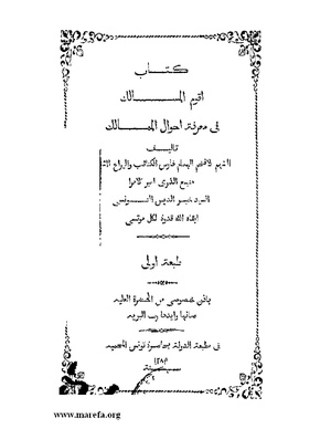 أقوم المسالك في معرفة أحوال الممالك تصنيف خير الدين التونسي. مطبعة الدولة التونسية، تونس، 1283 هـ. استعراض لأنظمة الحكم حول العالم مقرونة بنصائح لحاكم تونس.