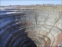 يعتبر منجم مير للماس في سيبريا، بـروسيا، واحدا من آيات الجمال والوحشية في الوقت نفسه. يبلغ عمقه 525 متر تحت سطح الأرض. وكذلك فإنه من المحظور الطيران فوق ثقب الحفرة لمسافة 1200 متر حيث أن قوة الشفط لحفرة بهذا العمق تؤدي لحوداث لطائرات الهليكوبتر.