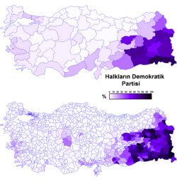 كما كان حزب الشعوب الديمقراطي المعارض المؤيد للأكراد، يخضع لمراقبة من السلطات التركية بسبب صلاته مع حزب العمال الكردستاني. وفي الأشهر الماضية أقيل رؤساء بلديات موالون للأكراد في جنوب شرق تركيا واعتقلوا لصلاتهم المفترضة بحزب العمال الكردستاني. ويعتبر حزب الشعوب الديمقراطي ثاني أكبر حزب معارض في البرلمان التركي.