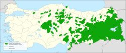 - ^ The Kurdish Population by the Kurdish Institute of Paris, 2017 estimate. "The territory, which the Kurds call Northern Kurdistan (Kurdistana Bakur), has 14.2 million inhabitants in 2016. According to several surveys, 86% of them are Kurds... So in 2016 there are about 12.2 million Kurds still living in Kurdistan in Turkey. We know that there are also strong Kurdish communities in the big Turkish metropolises like Istanbul, Izmir, Ankara, Adana and Mersin. The numerical importance of this "diaspora" is estimated according to sources at 7 to 10 million... Assuming an average estimate of 8 million Kurds in the Turkish part of Turkey, thus arrives at the figure of 20 million Kurds in Turkey."