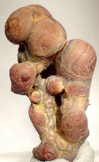 Crystal twinning is common in cassiterite and most aggregate specimens show crystal twins. The typical twin is bent at a near-60-degree angle, forming an "elbow twin". Botryoidal or reniform cassiterite is called wood tin.