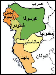 ولاية كوسوفا: وتمتد من شكودرا في دولة ألبانيا شرقا لتضم كلا من كوسوفا الحالية وجنوبي صربيا؛ حيث اندلع القتال بين المقاتلين الألبان والصرب، وكذلك جنوب شرق الجبل الأسود الحالي وشمال مقدونيا الحالية، بما فيها العاصمة المقدونية سكوبيا.