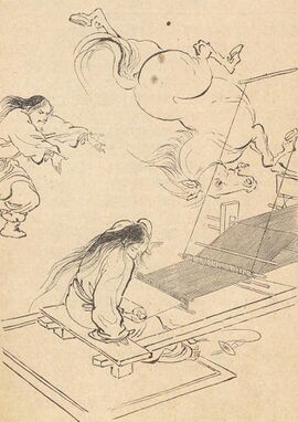 Some tellings say she had a sister named Wakahirume who was a weaving maiden and helped Amaterasu weave clothes for the other kami in heaven. Wakahirume was later accidentally killed by Susanoo.[105]