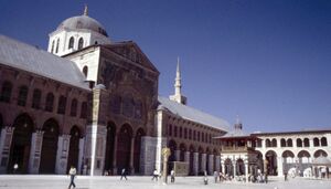 في عام 691م / 92هـ، أكمل عبد الملك قبة الصخرة في القدس، [113][114] وربما كان المقصود منها أن تكون نصب تذكاري للنصر على المسيحيين يميز تفرد الإسلام في البيئة الإبراهيمية المشتركة للقدس، موطن الديانتين الإبراهيميتين الأقدم اليهودية والمسيحية. [115][116] قد يكون الدافع البديل هو تحويل التركيز الديني للمسلمين في المملكة الأموية عن الكعبة في مكة الزبير (683-692)، حيث تمت إدانة الأمويين بشكل روتيني أثناء الحج. [115][117][116] في دمشق، صادر ابن عبد الملك وخليفته الوليد بن عبد الملك (ح. 705–715) كاتدرائية القديس يوحنا المعمدان وأسس الجامع الكبير في مكانه "كرمز للسيادة السياسية والهيبة الأخلاقية للإسلام"، حسب المؤرخ نيكيتا إليسيف. [118] في إشارة إلى وعي الوليد بقيمة الدعاية المعمارية للهندسة المعمارية، وصف المؤرخ روبرت هيلينبراند مسجد دمشق بأنه "نصب نصر" يُقصد به أن يكون "بياناً مرئياً للسيطرة الإسلامية والديمومة". [119]