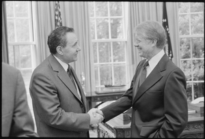 كان گروميكو المبعوث السوڤيتي إلى مؤتمرات طهران و دمبارتون أوكس, يالطا و پوتسدام.[13] In 1943, the same year as the Tehran Conference, the USSR established diplomatic relations with Cuba and Gromyko was appointed the Soviet ambassador to Havana.[14] Gromyko claimed that the accusations brought against Roosevelt by American right-wingers, that he was a socialist sympathizer, were absurd.[15] While he started out as a member delegate Gromyko later became the head of the Soviet delegation to the مؤتمر سان فرانسسكو after Molotov's departure. When he later returned to Moscow to celebrate the Soviet victory in the Great Patriotic War, Stalin commended him saying a good diplomat was "worth two or three armies at the front".[16]