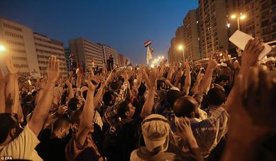 كما القى القبض على أعضاء جماعة الإخوان المسلمين و أغلق محطات التلفزيون الإسلامية في البلاد. وقالت جماعة أنصار الشريعة في بيانها أن الإطاحة العسكرية بالرئيس المنتخب، وإغلاق القنوات التلفزيونية والتسبب في مقتل المحتجين الاسلاميين بلغت كل تلك الإجراءات إلى كونها 'حرب معلنة ضد الإسلام في مصر "، حسب ماذكره موقع على الإنترنت. وقد ألقت الجماعة اللوم في تلك الأحداث على العلمانيين، ومؤيدي مبارك والمسيحيين الأقباط المصريين، وقوات أمن الدولة السابقة وقادة الجيش ، الذين قالوا إنهم بسبيل تحويل البلاد الى بلد 'صليبية، متطرفة وعلمانية . وإستنكرت الديمقراطية وقالت انه يتحتم وضع الشريعة الإسلامية بدلا منها، وسوف تعمل على الإستحواذ على أسلحة وتدريب المسلمين للسعى إلى "ردع المهاجمين، والحفاظ على الدين وتمكين شريعة الله"، حسب ما ذكره الموقع . وكانت ساحة ميدان التحرير والقريبة من نهر النيل رمز القاهرة فارغة إلى حد كبير هذا الصباح لكنه ترك متناثرا به الأنقاض في أعقاب أعمال العنف الليلة الماضية. وكان الآلاف من أنصار الإسلاميين مؤيدوا الرئيس مرسي ساروا إلى تلك المنطقة يطالبون باعادته الى منصبه ولكن الأمر انتهى بهم إلى مواجهات تحت وابل من الحجارة والألعاب النارية وإطلاق النار في بعض الأحيان.