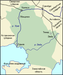 In 1868, the city became the administrative center of the created Ural region and Ural district , the capital of the Ural Cossack army, and was part of the Orenburg province [13] .