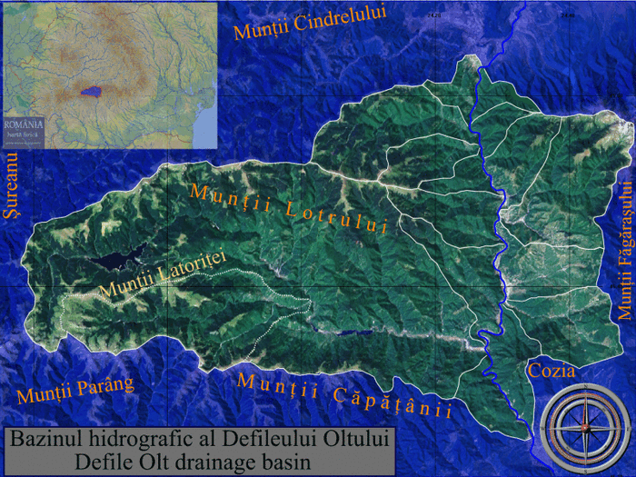 خريطة قابلة للنقر لحوض صرف (ro:Defileul Oltului)/(en:Olt Defile)
