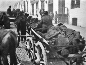 On the afternoon on 1 April, a Muslim delegation arrived at the Hotel Astoria. The Committee of Revolutionary Defense presented them with an ultimatum[notes 4] and demanded that representatives of all Muslim parties sign the document before the shelling stopped. Early in the evening, the agreements were signed and the bombardment stopped.[19] The fighting did not subside, however, until the night of 2 April 1918, when thousands of Muslims started leaving the city in a mass exodus. By the fifth day, although much of the city was still ablaze, all resistance had ceased, leaving the streets strewn with dead and wounded, nearly all of them Muslims.[1]