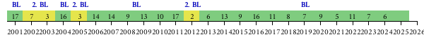 - Runners-up: 1994[بحاجة لمصدر]