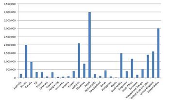تقدير للمهاجرين الهنود وفق البلد سنة 2008.
