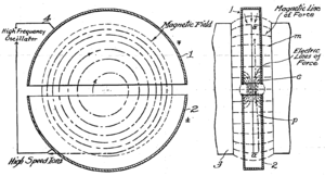 مخطط لتجربة السيكلوترون، إرنست لورنس، 1934 .
