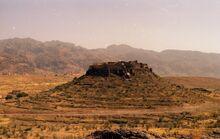 إقليم تارودانت - قصر تيزورگان. العديد من المستوطنات في جنوب المغرب مبنية على قمم التلال، لتقوية دفاعات المستوطنة، ولعدم استخدام الأراضي الخصبة. |