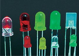 4ـ الديودات الباعثة للضوء light-emitting diodes (LED): في وصلة PN مستقطبة أمامياً، يتدفق تيار من الإلكترونات الحرة من الجانب N، ثم تندمج بالثقوب الموجودة على الجانب P. إن الإلكترونات الحرة تقع في حزمة النقل، فهي إذاً تمتلك طاقة أكبر من الثقوب التي تقع في حزمة التكافؤ. فعندما يندمج إلكترون من حزمة النقل بثقب في حزمة التكافؤ تتحرر طاقة مساوية إلى الفرق بين مستويي الطاقة الأعلى والأدنى للإلكترون المنتقل. يمكن لهذه الطاقة أن تكون حرارية، كما هي الحال في السيليكون، أو ضوئية في مواد نصف ناقلة أُخرى كزرنيخ الگاليوم gallium arsenide (GaAs) أو فوسفور الگاليوم gallium phosphor (GaA)، وبفرض أن الطاقة الضوئية المتحررة كانت مرئية تدعى عندها وصلة PN بالديود الباعث للضوء. توضع وصلة PN المصدرة للضوء في علبة شفافة وملونة بطريقة معينة لزيادة التباين الضوئي، وتكون مجهَّزة بمُحرف بغية تركيز الضوء المنبعث كما هو موضح بالشكل (5).