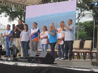There were also various protests against the Marcos administration at the time, with Aurora Park in the Laoag Plaza being one of the favored places to stage protests.[29] One of the prominent victims of the Martial Law era who came from Laoag was Catholic layperson and social worker Purificacion Pedro, who volunteered in organizations protesting the Chico River Dam Project in the nearby Cordillera Central mountains.[30] Wounded while visiting activist friends in Bataan, she was later killed by Marcos administration soldiers while recuperating in the hospital.[31][32] Another prominent opponent of the martial law regime was human rights advocate and Bombo Radyo Laoag program host David Bueno, who worked with the Free Legal Assistance Group in Ilocos Norte during the later part of the Marcos administration and the early part of the succeeding Aquino administration. He would later be assassinated by motorcycle-riding men in fatigue uniforms on October 22, 1987 – part of a wave of assassinations that coincided with the 1986-87 coup d'état that tried to unseat the democratic government set up after the 1986 People Power Revolution.[33] Both Bueno and Pedro were later honored among the first 65 people to have their names inscribed on the Wall of Remembrance of the Philippines' Bantayog ng mga Bayani, which honors the martyrs and heroes who fought the dictatorship,[34] and Pedro was listed among Filipino Catholics nominated to be named Servant of God.[35]