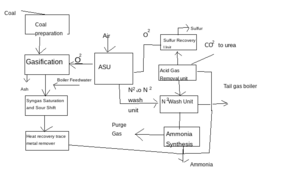 Making ammonia from coal is mainly practised in China, where it is the main source.[4] Oxygen from the air separation module is fed to the gasifier to convert coal into synthesis gas (H