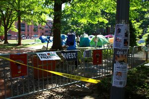 في 24 أبريل 2024، أقام مجموعة طلبة مخيماً في باحة جامعة هارڤرد.[97]