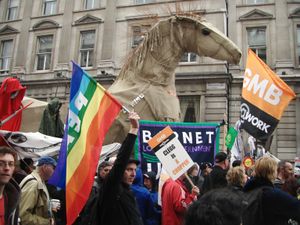 - ^ "Demonstrators swarm central London to protest spending cuts". CNN. 26 March 2011. Retrieved 26 March 2011.