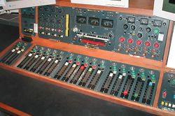 - مازج الصوت: إنگليزية: Sound Mixer جهاز تصل إليه كل معدات الصوت في الأستوديو ويقوم مهندس الصوت بموازنتها وضبطها حسب الموقف. ويعتمد على النظام المتبع في الأستوديو بحيث يمكن أن يعتمد التقنية الرقمية أو التقنية التناظرية ويمكن أن يكون لهذا الجهاز إمكانت التسجيل والبث بنظام الدولبيإنگليزية: Dolby والستيريوإنگليزية: Stereo أو بنظام المونو إنگليزية: Mono. وفي الجهاز عدة وسائل أخرى منها لتنقية الصوت أو تغليظه أو تنعيمه حسب المطلوب.