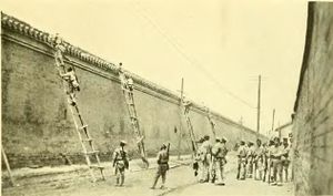 The attack began the next day, with royalists troops entrenched on the wall of the Temple of Heaven.[12] Shortly after the fighting began, negotiations resumed, resulting in the royalists giving up their positions. General Zhang, dismayed, fled to the legations quarter.[12] Once General Zhang had fled, the royalist troops called for a ceasefire, which was immediately granted.[12]