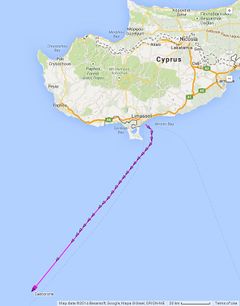 في يوم 25 مايو، قمت بزيارة تاريخ مسار السفينة على الموقع، فوجدت لديهم سجل لآخر 1,600 موقع للسفينة (يفصل بين كل منهم 5 دقائق). ففوجئت بأن كاستورونه تحركت من ليماسول في الثامن من مايو بأقصى سرعة لها، 12 عقدة (22 كم/س)، باتجاه الجنوب الغربي، أي تقريباً باتجاه إدكو، بمحافظة البحيرة المصرية، حيث يوجد معمل الغاز المسال التابع لشركة بريتش جاس، كما يظهر في الخريطة (3). والغريب أن كاستورونه كانت من قبل تظهر راسية في ليماسول حين زرت الموقع الإلكتروني في ذلك اليوم وكل الأيام من 2-20 مايو. ثم يختفي مسار السفينة لأربعة أيام لتعاود الظهور في مساء 12 مايو على بعد 80 كم شمال إدكو/رشيد.
