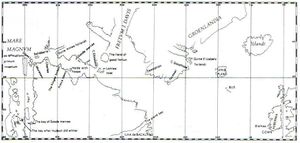 In 1499 João Fernandes Lavrador was licensed by the King of Manuel I of Portugal and together with Pêro de Barcelos they reached Greenland and sighted لبرادور for the first time since Leif Erikson, which was granted and named after Lavrador. After returning he possibly went to Bristol to sail in the name of England.[1] Nearly at the same time, between 1499 and 1502 the brothers Gaspar and Miguel Corte Real explored and named the coasts of Greenland, Labrador and also Newfoundland, naming "Terra Verde" the explored North American coasts.[2] Both explorations were signaled in 1502 Cantino planisphere.