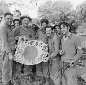 Royal Scots with captured Japanese flag, Burma, January 1945.