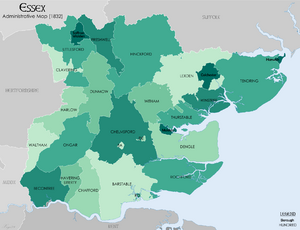 - ^ أ ب Vision of Britain Archived 26 يناير 2009 at the Wayback Machine – Essex admin county (historic map Archived 30 سبتمبر 2007 at the Wayback Machine)