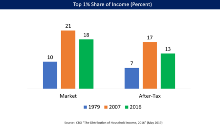 احتلت الولايات المتحدة المرتبة 41 في تفاوت الدخل من بين 156 دولة عام 2017،[74] وهو الأعلى مقارنة ببقية بلدان العالم الغربي.[75] استمر كل من هذه المتغيرات في منطقة ما بعد الركود بعد تلك التواريخ، حيث أصبح الانتعاش الأمريكي ثاني أطول فترة مسجلة بحلول أبريل 2018.[76]