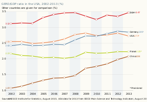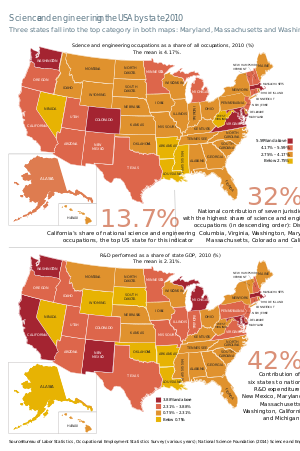 - ^ أ ب ت ث ج ح خ د ذ ر ز س ش ص Stewart, Shannon; Springs, Stacy (2015). United States of America. In: UNESCO Science Report: towards 2030 (PDF). Paris: UNESCO. pp. 129–55. ISBN 978-9231001291.