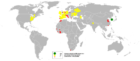 الصادرات - الشركاء: South Korea 15.6%, Russia 13.1%, Spain 12.3%, Ireland 9.1%, الولايات المتحدة 7.5%, Ukraine 5.6%, Belgium 5.2% (2004)