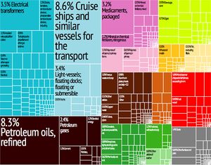 الصناعات الرئيسية | الكيماويات واللدائن، آلات التشغيل، المعادن المصنعة، الإلكترونيات، منتجات حديد الصب والصلب المدرفل، الألومنيوم، الورق، منتجات الأخشاب، مواد البناء، المنسوجات، بناء السفن، النفط وتكرير النفط، الأغذية والمشروبات، السياحة |