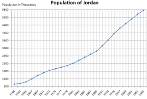 مخطط لسكان الأردن من 1960 إلى 2005.