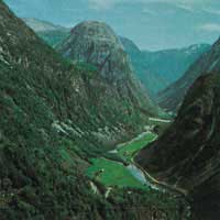 مثالج البليستوسين تقطع الأودية عبر الجبال على امتداد شاطئ النرويج. كشط الجليد الواجهات الجبلية بعيدًا وذاب بعد ذلك مخلفًا وراءه الصخر المتفتت.