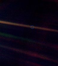 Earth seen as a tiny dot by the Voyager 1 spacecraft, more than 6 billion kilometers from Earth.