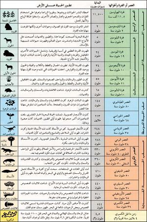 ملخص تاريخ الأرض يلخص جـدول الأزمنة الجيولوجية تطور الأرض والحياة عليها. يظهر أقدم تاريخ للأرض أسفل الجدول والأحدث في أعلاه.