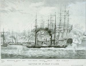 In 1839, the Ottoman Empire attempted to retake Syria from Muhammad Ali but was defeated by his son, Ibrahim Pasha in the Battle of Nezib. Following this, a new war between Muhammad Ali and the Ottomans escalated, with the latter once again failing to wage it successfully. In June 1840, the entire Ottoman navy defected to Muhammad Ali and the French planned to offer full support to Muhammad Ali's cause.[1]