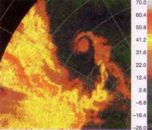 لقد أكدت القياسات الأولى لرادار دوپلر عام 1971 أن الرياح داخل «منجل» hook تدور بالفعل بسرعات تصل إلى نحو 50 ميلا في الساعة. ويتبع هذا الدوران ـ الذي يظهر أول ما يظهر على ارتفاع نحو ثلاثة أميال ـ دوران على ارتفاعات أخفض بكثير يسبق تطور أي إعصار قمعي شديد، وقد تصادف ظهور شذوذ صغير في عاصفة على خريطة دوپلر للسرعة ـ فوق يونيون سيتي بولاية أوكلاهوما عام 1973 ـ في الزمان والمكان مع إعصار قمعي عنيف.